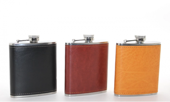 Paslanmaz Çelik Tekli 7 Oz Derili Matara Alk2660