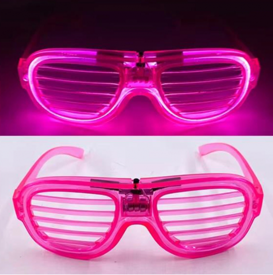 Pembe Led Işıklı Parti Gözlüğü - Neon Glow Şerit Gözlük 3 Modlu
