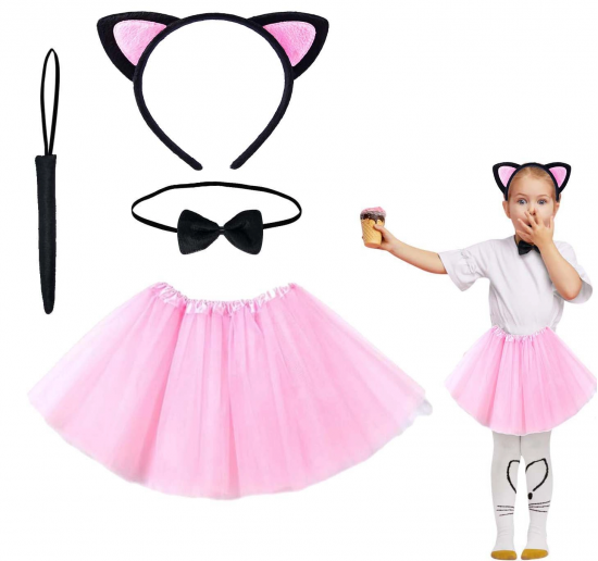 Pembe Renk Etekli Kedi Kostüm Seti (tütü, Taç, Papyon, Kuyruk)