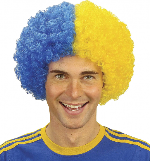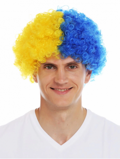 Sarı Lacivert Kıvırcık Afro Bonus Peruk Taraftar Bonus Saç