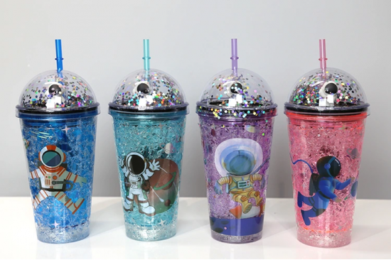 Sevimli Astronot Işıklı Pipetli Pullu Suluk & Bardak 400 Ml Alk3148