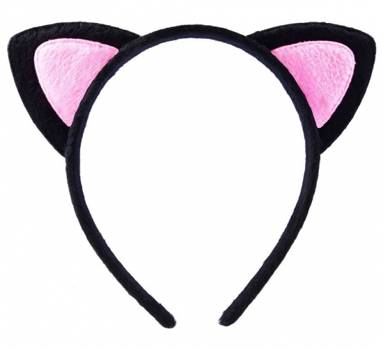 Sevimli Kedi Kulak Pofuduk Kedi Taç Siyah İçi Pembe Renk 17x15 Cm