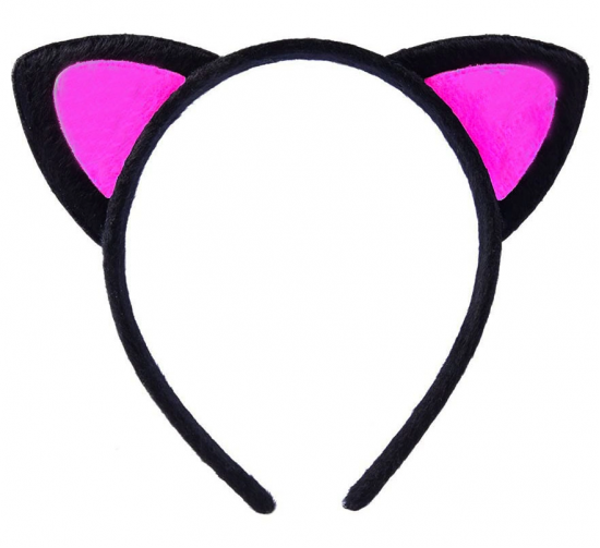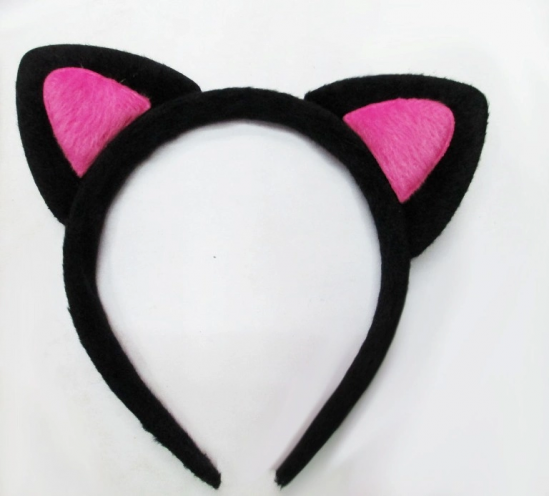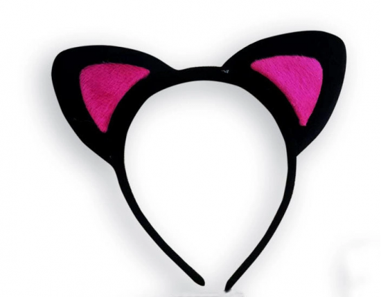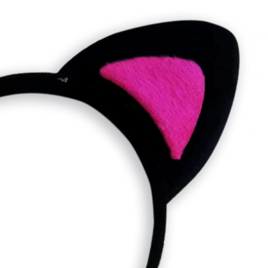 Sevimli Kedi Kulak Pofuduk Kedi Taç Siyah İçi Şeker Fuşya Renk 17x15 Cm