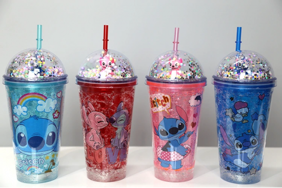 Sevimli Stitch Işıklı Pipetli Pullu Suluk & Bardak 400 Ml Alk3146