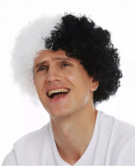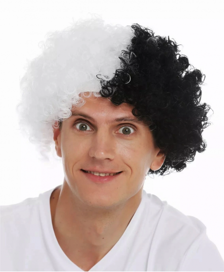 Siyah Beyaz Kıvırcık Afro Bonus Peruk Taraftar Bonus Saç