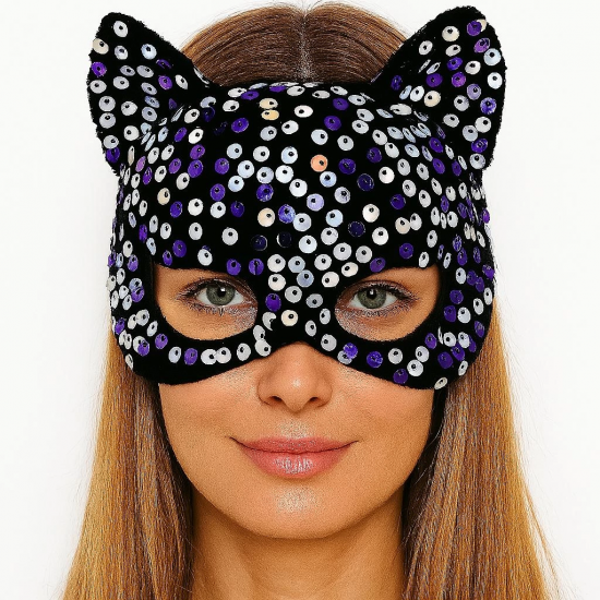 Etiketler: Siyah Kadife Kumaş Üzerine Mor Beyaz Payetli Pullu Parti Maskesi 16x14 Cm