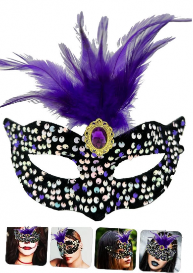 Etiketler: Siyah Kadife Üzeri Rengarenk Payetli Pullu Mor Tüylü Mor Taşlı Parti Maskesi 19x21 Cm