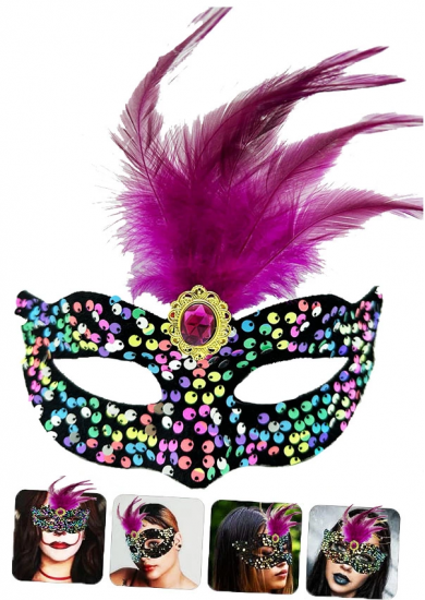 Etiketler: Siyah Kadife Üzeri Rengarenk Payetli Pullu Pembe Tüylü Pembe Taşlı Parti Maskesi 19x21 Cm