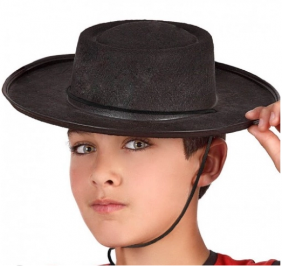 Siyah Renk Keçe Flamenko Şapkası Çocuk Boy