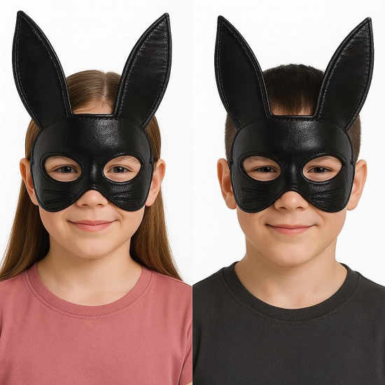 Siyah Renk Kumaş Malzemeden İmal Eva Tavşan Maskesi 19x15 Cm