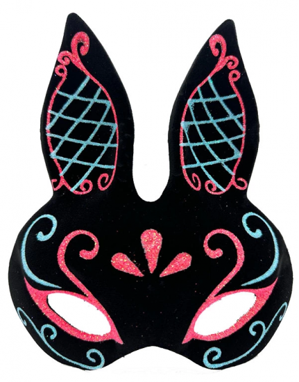 Siyah Renk Mavi Kırmızı Simli Siyah Süet Kaplama Tavşan Maskesi 18x16 Cm