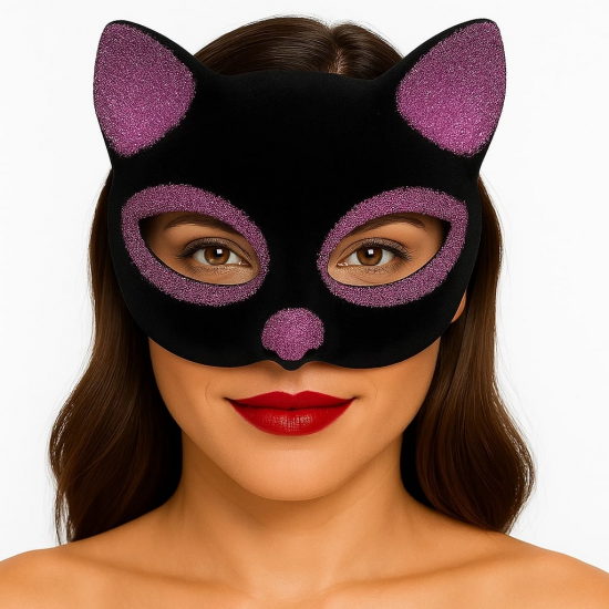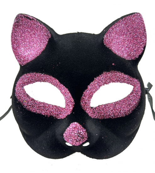Siyah Renk Pembe Simli Süet Kaplama Kedi Maskesi 18x14 Cm