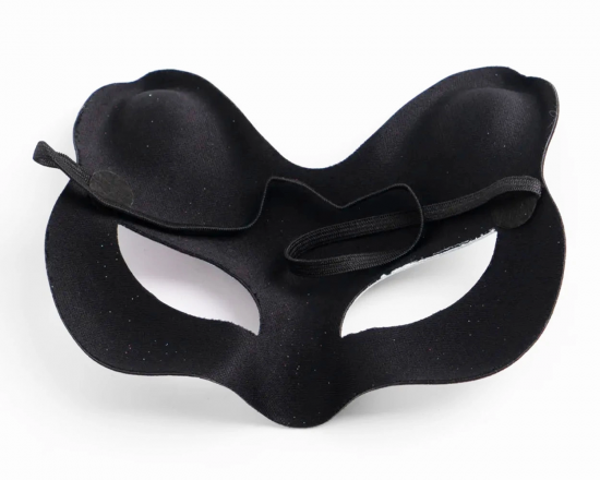 Siyah Renk Süet Kaplama Üzeri Pembe Sarı Simli Kedi Maskesi 17x14 Cm