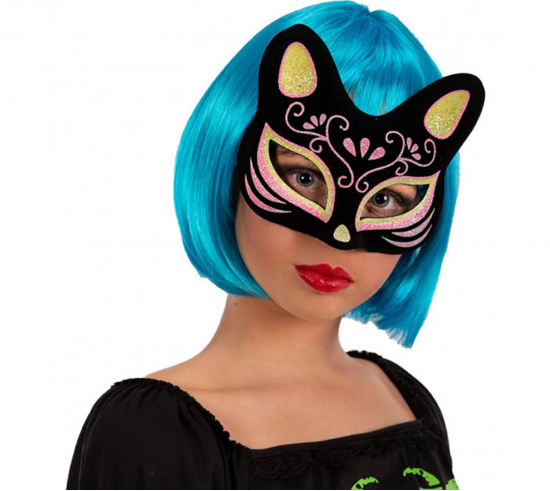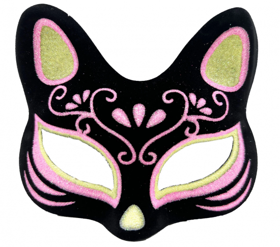 Siyah Renk Süet Kaplama Üzeri Sarı Pembe Simli Kedi Maskesi 17x14 Cm