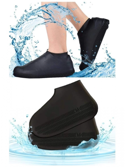 Siyah Silikon Yağmur Koruyucu Ayakkabı Kılıfı Kaymaz Su Kir Geçirmez Large (40-46)