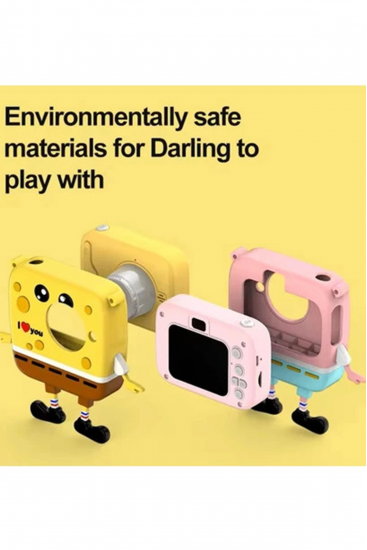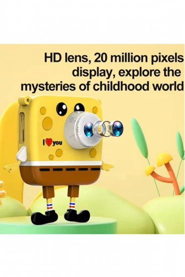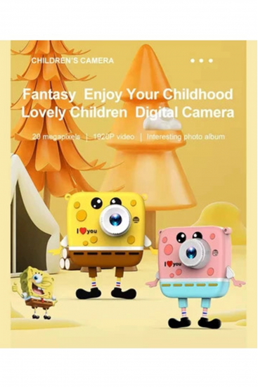 Sünger Bob Tasarımlı Yeni Nesil Çocuk Dijital Mini Fotoğraf Makinesi Çift Kamera