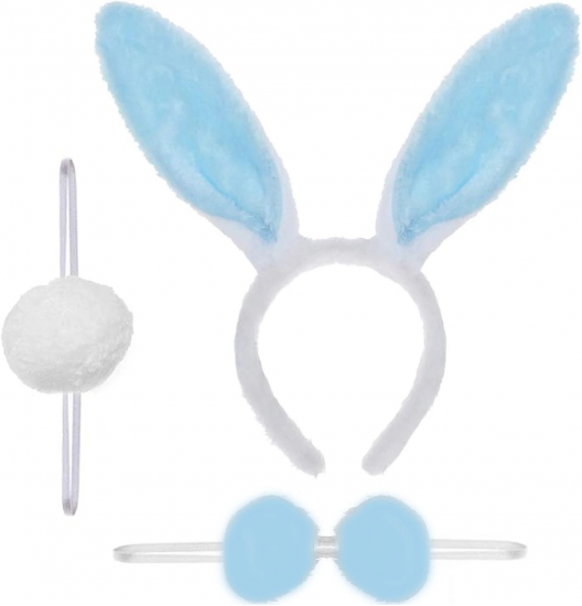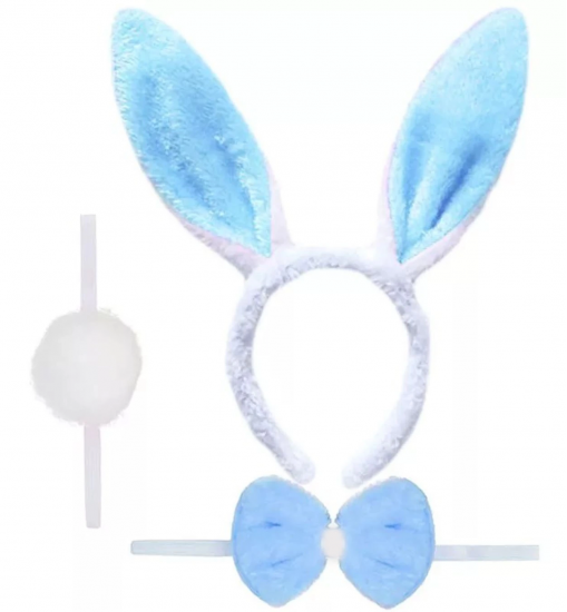 Tavşan Kostüm Seti Taç Papyon Ponpon Kuyruk Mavi