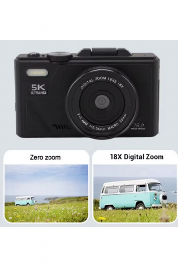 5k 75mp Hd Dijital Kamera 18x Dijital Zoom, Flaşlı,3.0 İnç Ekranlı Fotoğraf Makinesi
