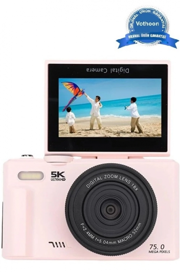 5k 75mp Hd Dijital Kamera 18x Dijital Zoom, Flaşlı,3.0 İnç Ekranlı Vlog Ve Fotoğraf Makinesi