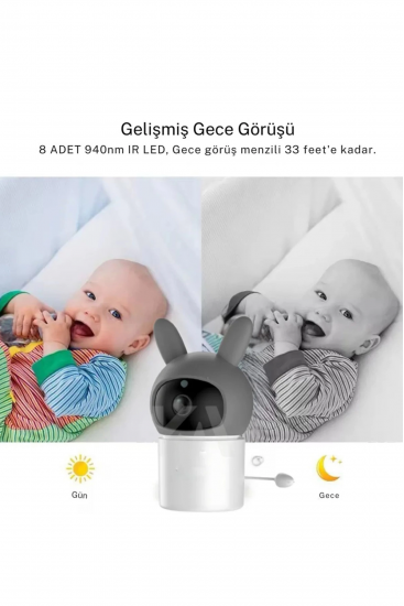 Etiketler: Bebek Kamerası Kumandalı Monitörlü Karşılıklı Konuşma Özellikli, Hatırlatıcılı Ip Bebek Kamerası