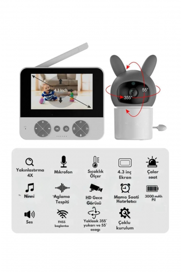 Bebek Kamerası Kumandalı Monitörlü Karşılıklı Konuşma Özellikli , Hatırlatıcılı Ip Bebek Kamerası