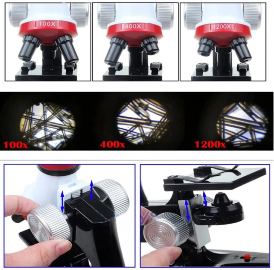 Eğitici Mikroskop Kiti Zoom Led Işıklı 100x 400x 1200x St1200x