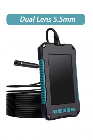 Ekranlı Çift Kameralı 10 Mt Hafıza Kart Destekli Sert Kablo Yılan Endoskop Kamera 5.5 Mm 4.3 Inc