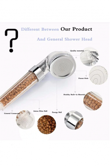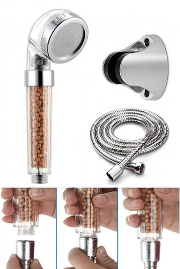 Filtreli Ve Su Tasarruflu Arıtmalı Duş Başlığı Seti Boncuklu Başlık Hortum Ve Mafsal Set