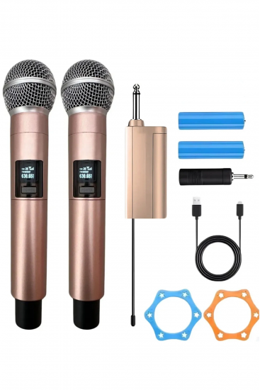 Etiketler: Profesyonel Çiftli Kablosuz Mikrofon Seti Karaoke Şarj Edilebilir 50 Metre Mesafe Rose