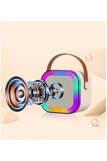 Karaoke Kablosuz Hoparlör Mikrofonlu Rgb Işıklı Bluetooth Speaker Tf Kart/usb Beyaz