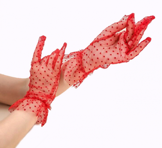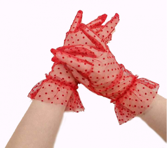 Kısa Boy Güpürlü Kırmızı Puantiyeli Tül Eldiven Kırmızı Renk