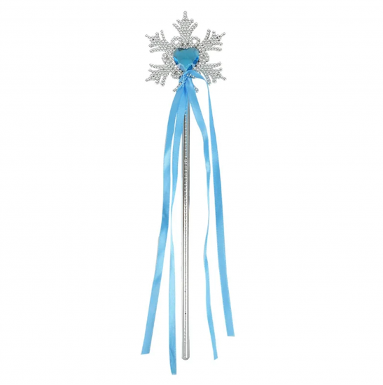 Kar Taneli Mavi Kalp Taşlı Saten Kurdeleli Karlar Ülkesi Elsa Asası Sopası 34 Cm