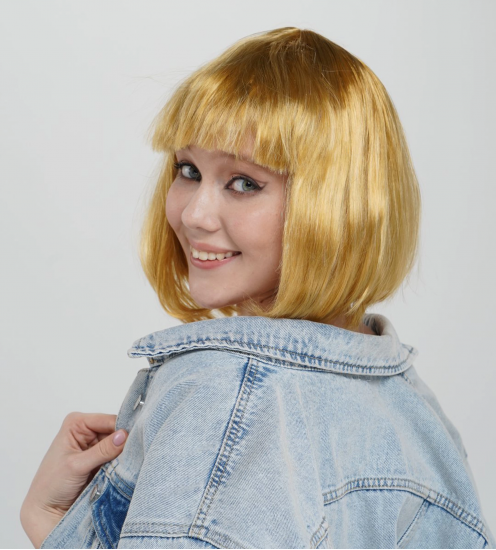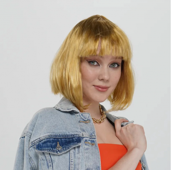 Etiketler: Altın Renk Düz Kesim Küt Parti Peruğu Kısa Takma Saç