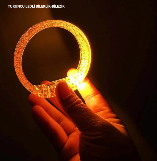 Turuncu Led Işıklı Baskı Yapılabilen Pilli Bileklik Bilezik 1,5 Cm Genişlik
