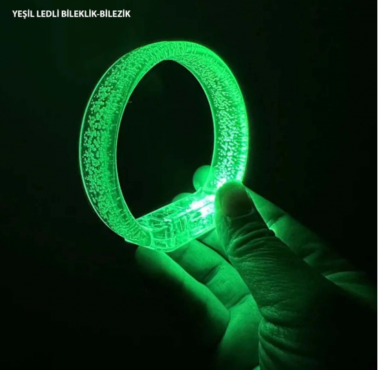 Yeşil Led Işıklı Baskı Yapılabilen Pilli Bileklik Bilezik 1,5 Cm Genişlik