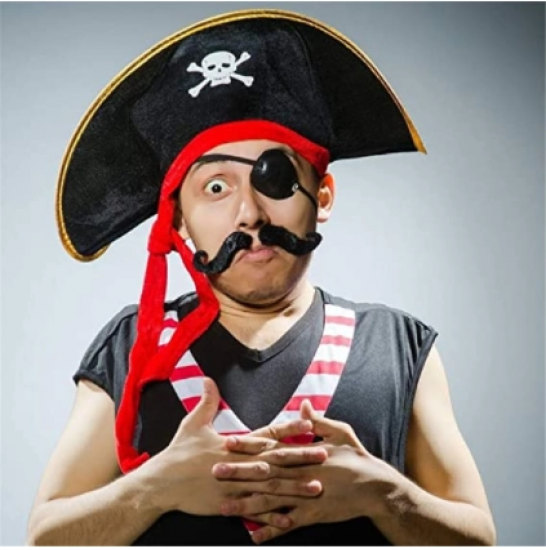 Etiketler: Yetişkin Boy Kadife Kaptan Jack Sparrow Korsan Şapkası Ve Plastik Korsan Göz Maskesi