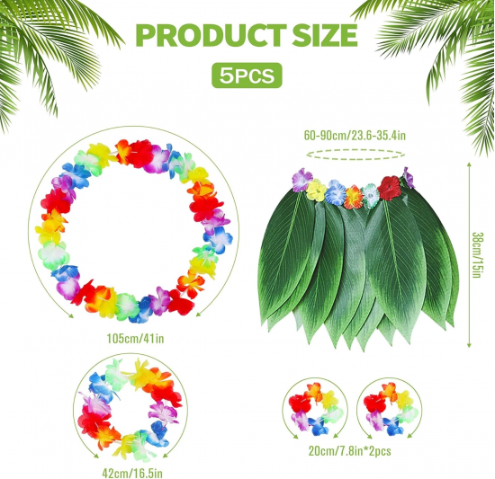 Yetişkin Hawaii Kostüm Seti - Yaprak Etek Hawaii Set - 5 Parça