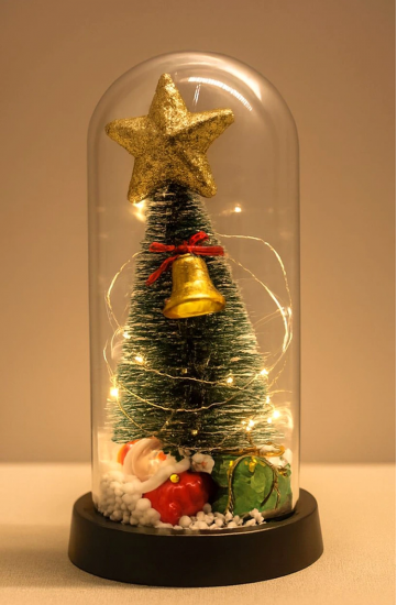 Yılbaşı Temalı Işıklı Dekoratif Cam Fanus Alk5078